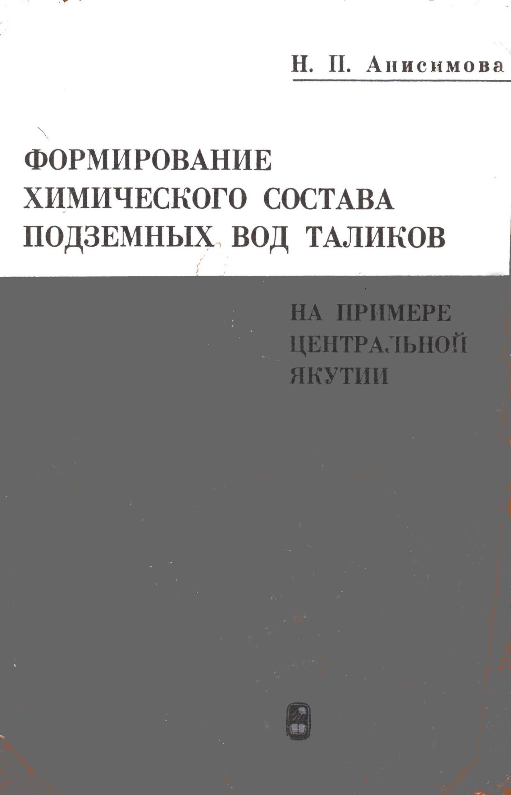 Анисимова Н.П. Формирование химического состава подземных вод таликов (на примере Центральной Якутии). - М.: Наука, 1971. - 195 с.